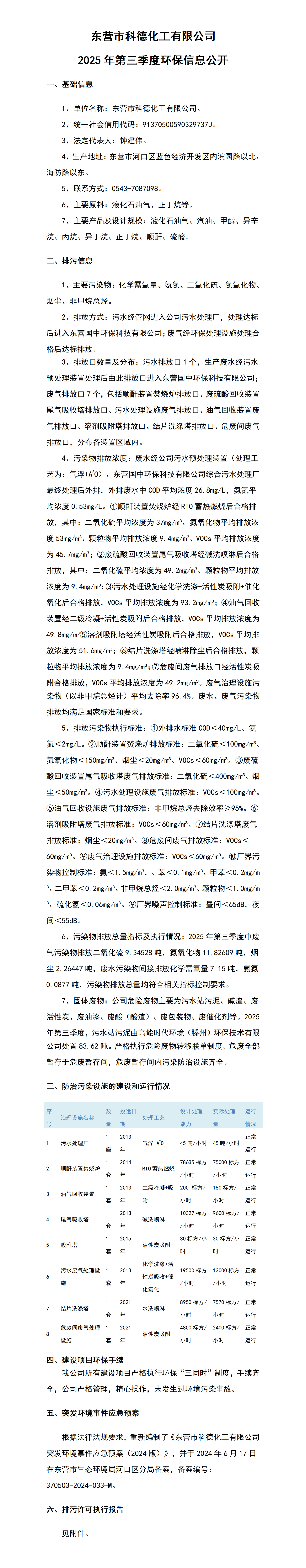 東(dōng)營市科德化工有限公司2025年第三季度環(huán)保信息公開